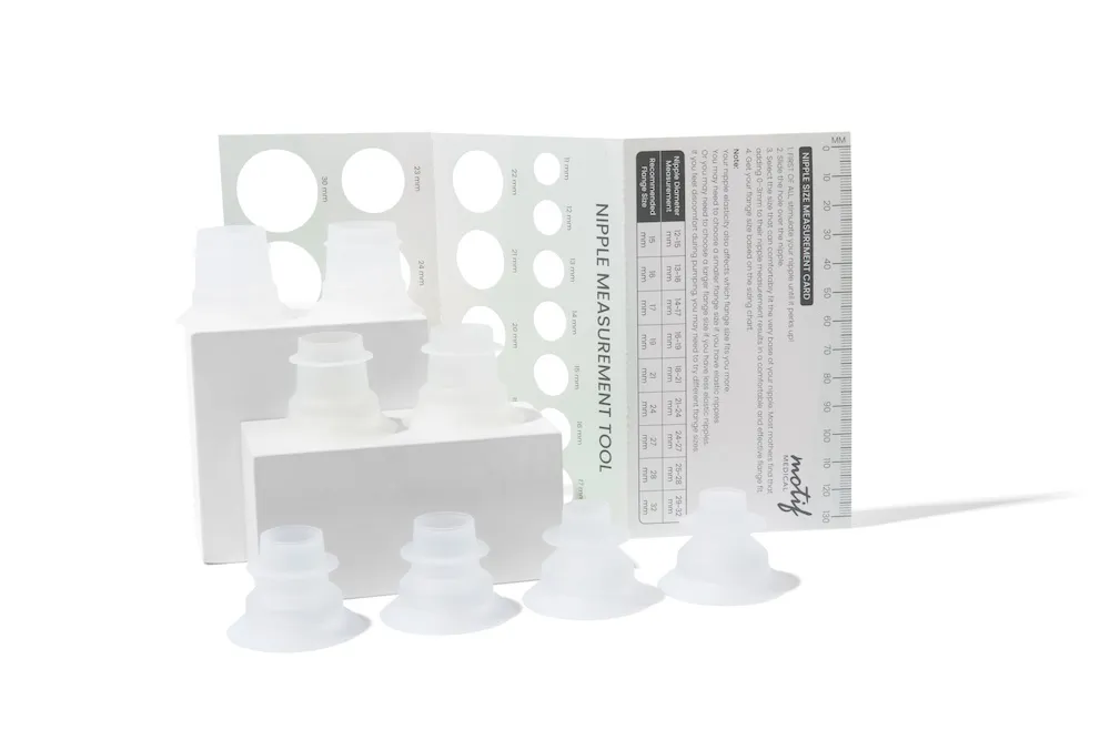 The Motif Roam comes equipped with everything you need for a seamless pumping experience; 28 mm breastshields, tubing with connectors, duckbill valves, diaphragms, and flange inserts in sizes 16 mm, 19 mm. 21 mm, and 24 mm for a perfect fit. A lanyard adds portability, while the USB-C cable and power adapter ensure quick, easy charging. Designed for freedom and flexibility, the Roam is ready to support your routine wherever life takes you.